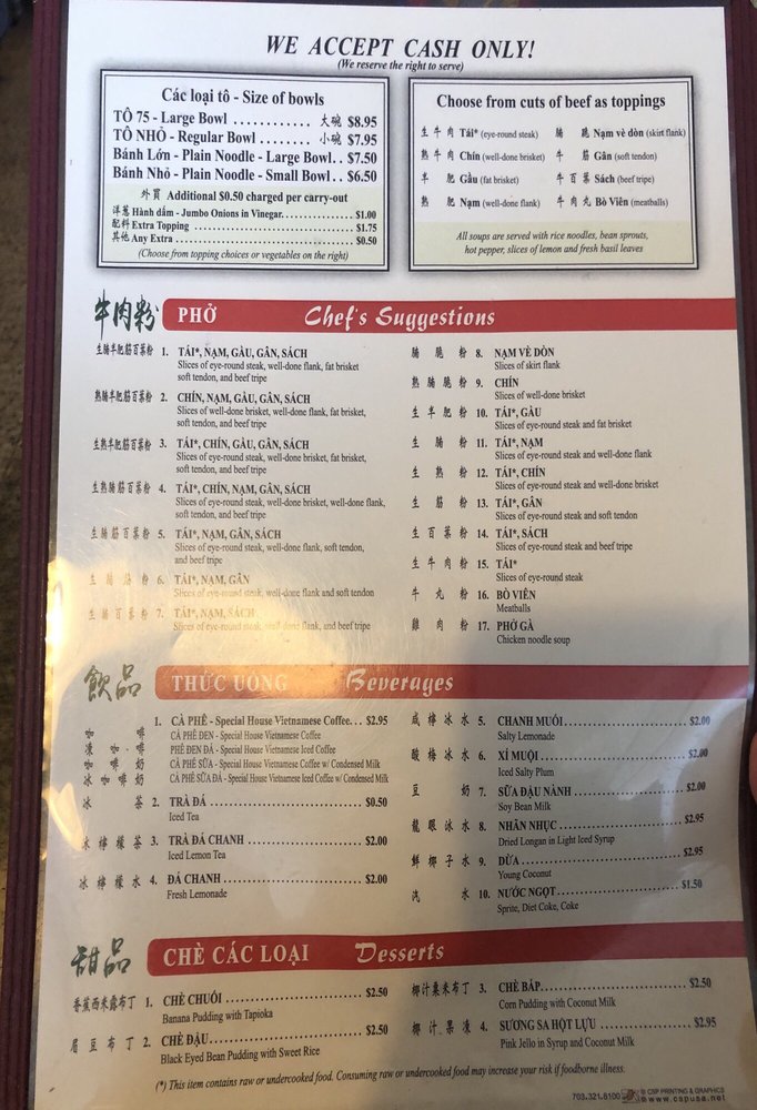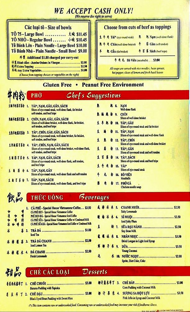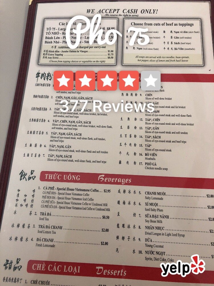 Pho 75 in Falls Church, VA, is renowned for serving the best pho in the area, with a simple yet flavorful menu. The broth is deep and meaty, complemented by generous noodles and perfectly sliced beef. Customers rave about the authenticity and quality of the food, despite some occasional inconsistencies in meat tenderness. The casual and bustling atmosphere adds to the overall experience. Though some feel the portion sizes have decreased over time, Pho 75 remains a go-to spot for those craving a comforting bowl of pho. With a cash-only policy, fast service, and a variety of protein options, Pho 75 continues to attract a loyal following of pho enthusiasts looking for a satisfying and affordable dining experience.